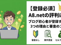 お悩みの方「ブログで稼ぎたいけれど、どのアフィリエイトASPに登録すればいいかわからない…」 「審査が厳しくて落ちたらどうしよう…」お悩みの方 ブログを始めたばかりのころ、誰もがこのような不安を抱えます。 アフィリエイトASP(広告仲介業者)は国内に数十社以上存在しますが、 もしあなたが「まだどこにも登録していない」のであれば、 迷わず「A8.net(エーハチネット)」を選びましょう! A8.netは日本で一番多くのアフィリエイターが利用している、 いわば「アフィリエイトの義務教育」のような存在です。 こ ...